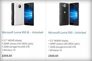 يبدو أن مايكروسوفت ضيعت ولو جزئيا المفاجأة التي كانت تعدها منذ فترة للكشف عن هاتفيها الجديدين لوميا 950 و لوميا 950 XL حيث أشارت وسائل الإعلام أن الشركة قامت بالكشف عن الجهازين على متجرها الإلكتروني عن طريق الخطأ.